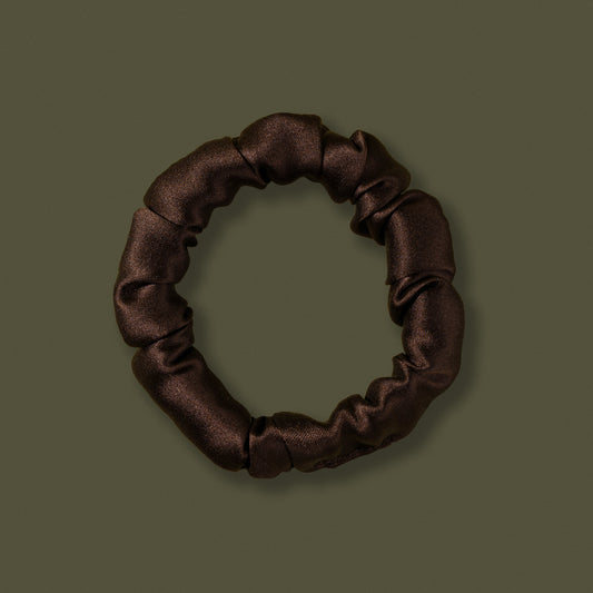 Scrunchie mini z jedwabiu – kolor gorzka czekolada